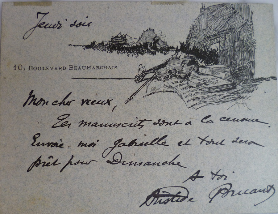 Aristide Bruant carte de visite with Steinlen illustration