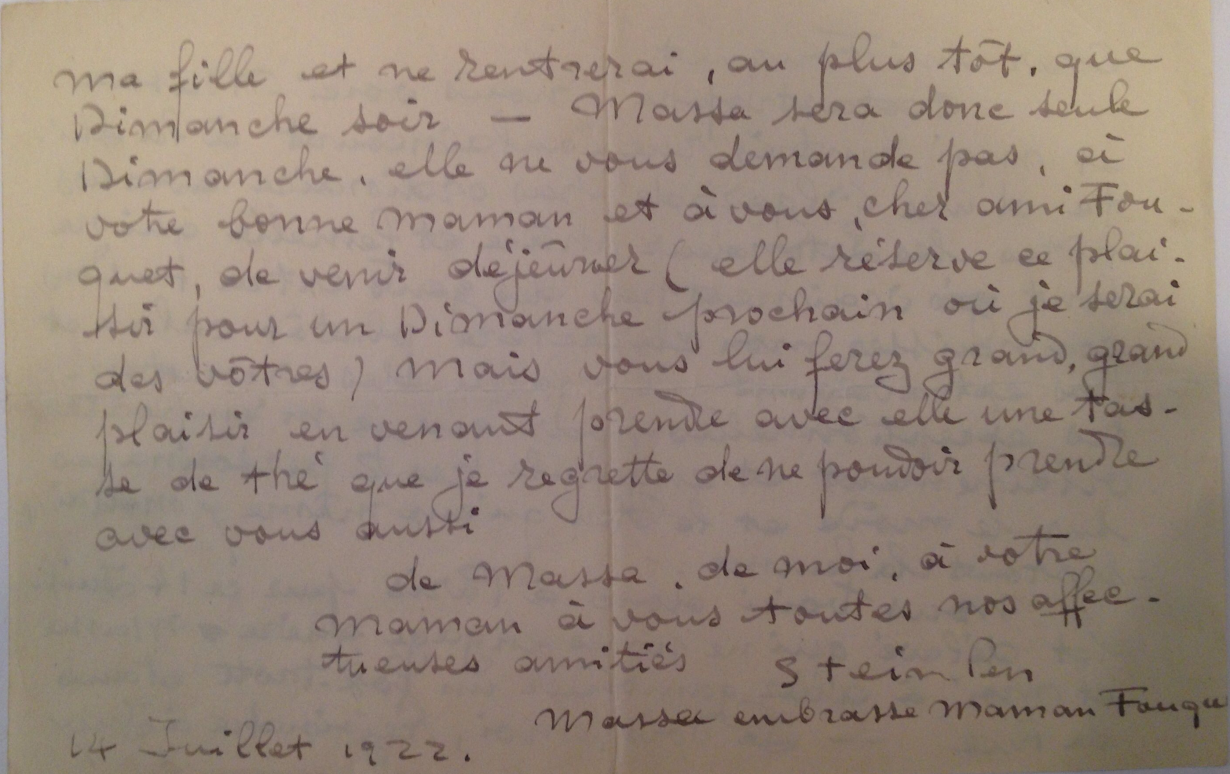Letter to Fouquet (Jul. 14, 1922) (back)