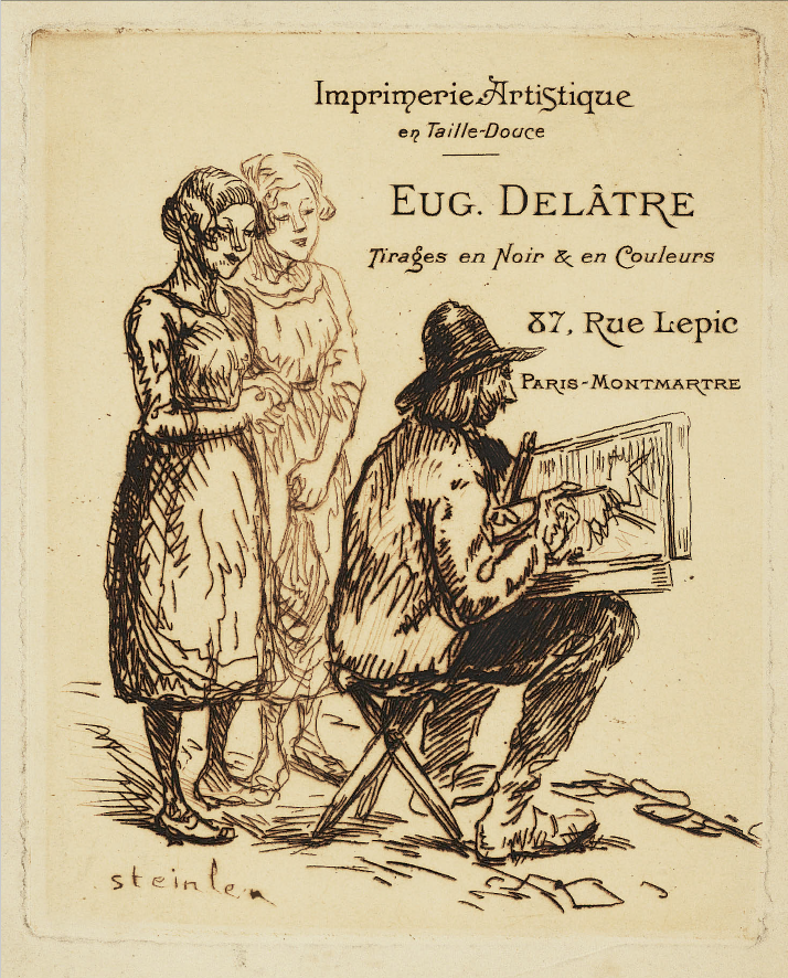 Autour de Nos Moulins etching used for Eugene Delatre address card